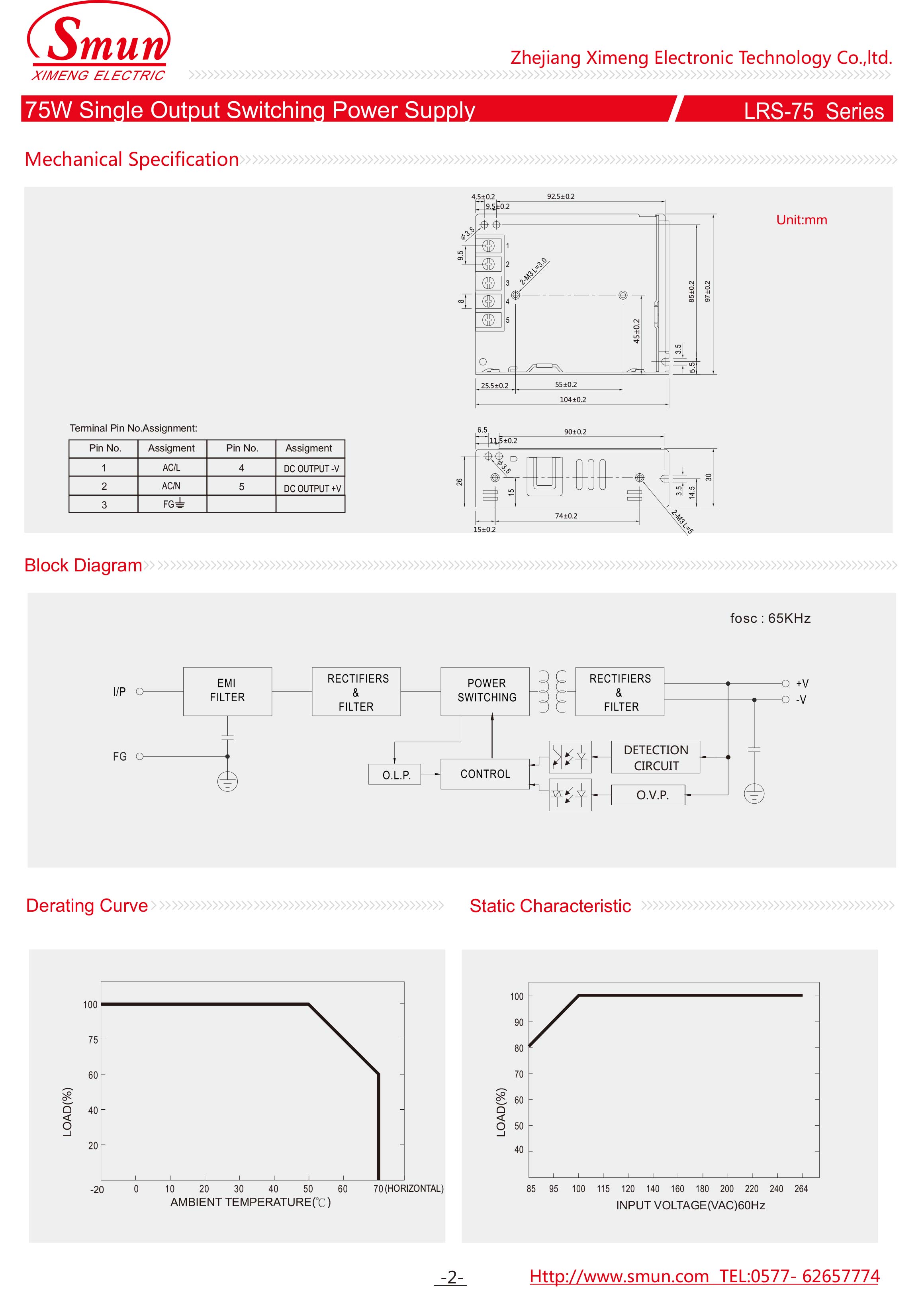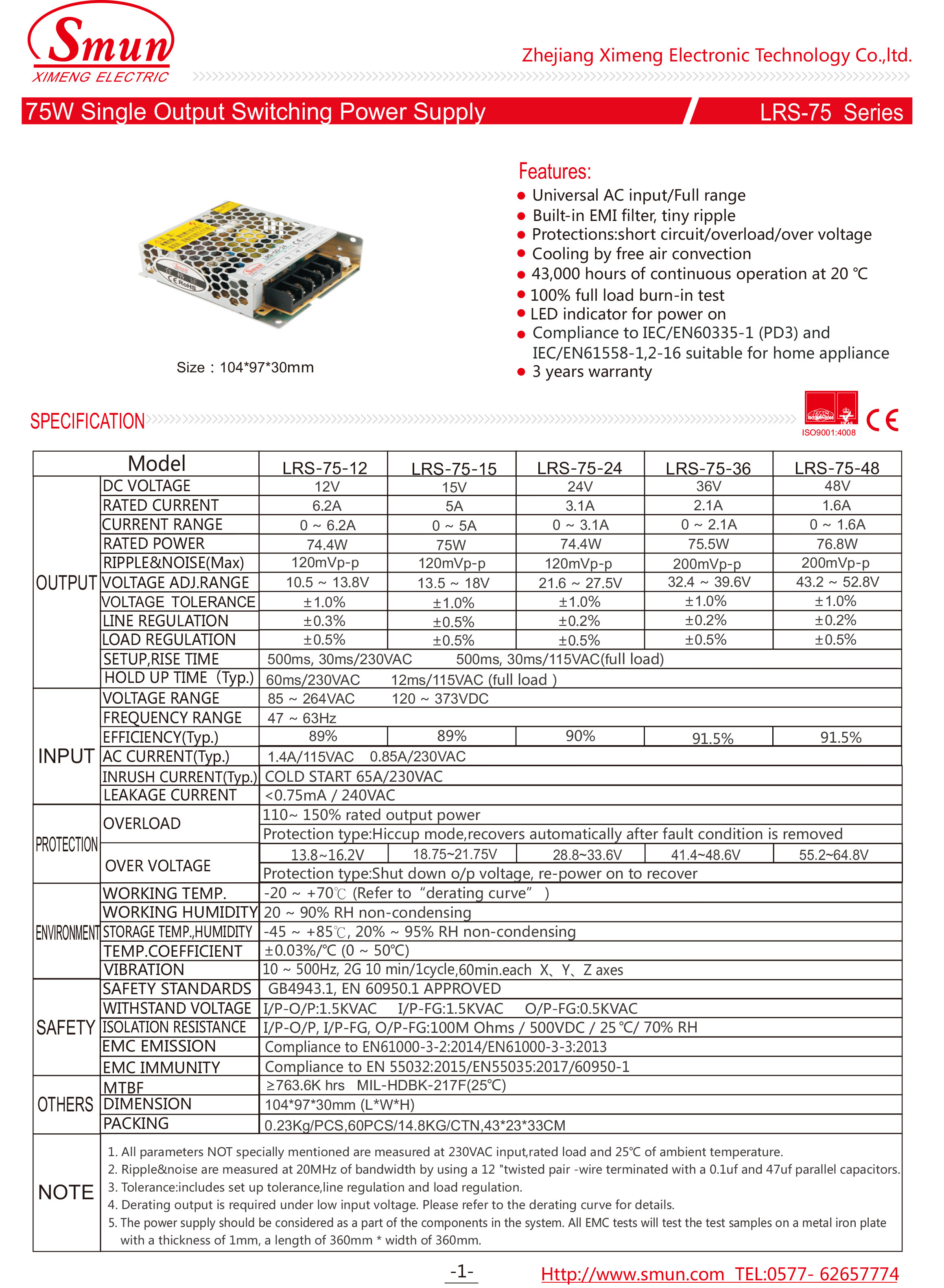 La serie LRS-75 es una fuente de alimentación de tipo cerrado de salida única de 75 W con 30 mm de diseño de perfil bajo.Adoptando la entrada de rango completo de 85-264 VCA, toda la serie proporciona una línea de voltaje de salida de 5 V, 12 V, 15 V, 24 V, 36 V y 48 V .